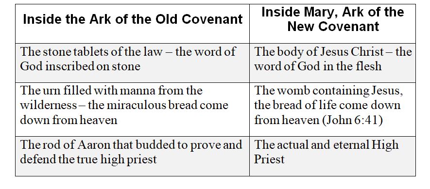 • St. Ambrose (340–397 AD): Explicitly stated that the Ark bore the tables of the Testament, but Mary bore the “Heir of the same Testament itself”.
