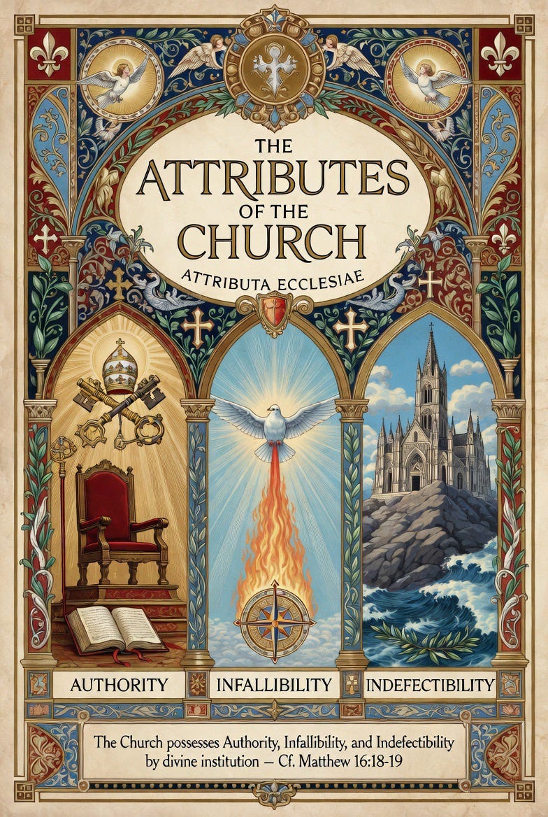 These three attributes are intimately connected: authority is exercised infallibly in doctrinal matters and is indefectibly preserved until the consummation of the world. They underscore the Catholic conviction that the Church is not merely a human organization but the Mystical Body of Jesus Christ, sustained by divine promise. “The Church is not a continuous phenomenon through history, rather, it is something that has been through a thousand Resurrections after a thousand crucifixions. The bell is always sounding for its execution which, by some great power of God, is everlastingly postponed” (Venerable Fulton J. Sheen).